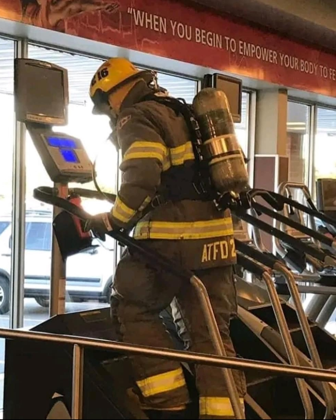 At first glance, it looked like just another evening at the gym. The machines hummed, people jogged on treadmills, headphones in, lost in their own rhythm. But then, in the corner, a sight caught everyone’s eye: a firefighter, dressed head…